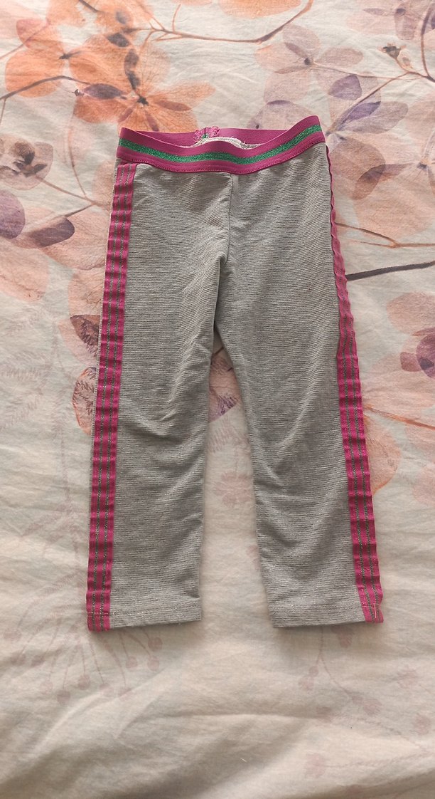 Kız çocukları için gri renkli, elastik bele sahip ve pembe yan şerit detaylı streç tayt. Yumuşak ve sıcak kumaştan, günlük sokak tarzına uygun.