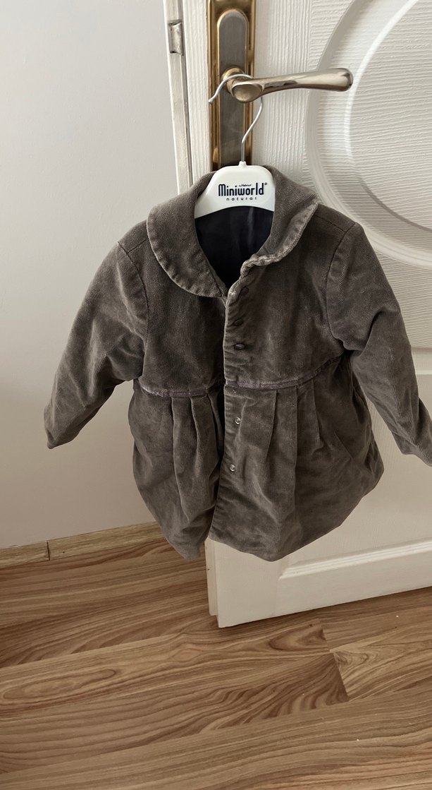 Gri süet kumaştan, düğmeli ve notalı yaka detaylı, bol kesim kız çocuk ceketi. Desensiz, sade bir tasarıma sahiptir. Yurt dışı ürünüdür