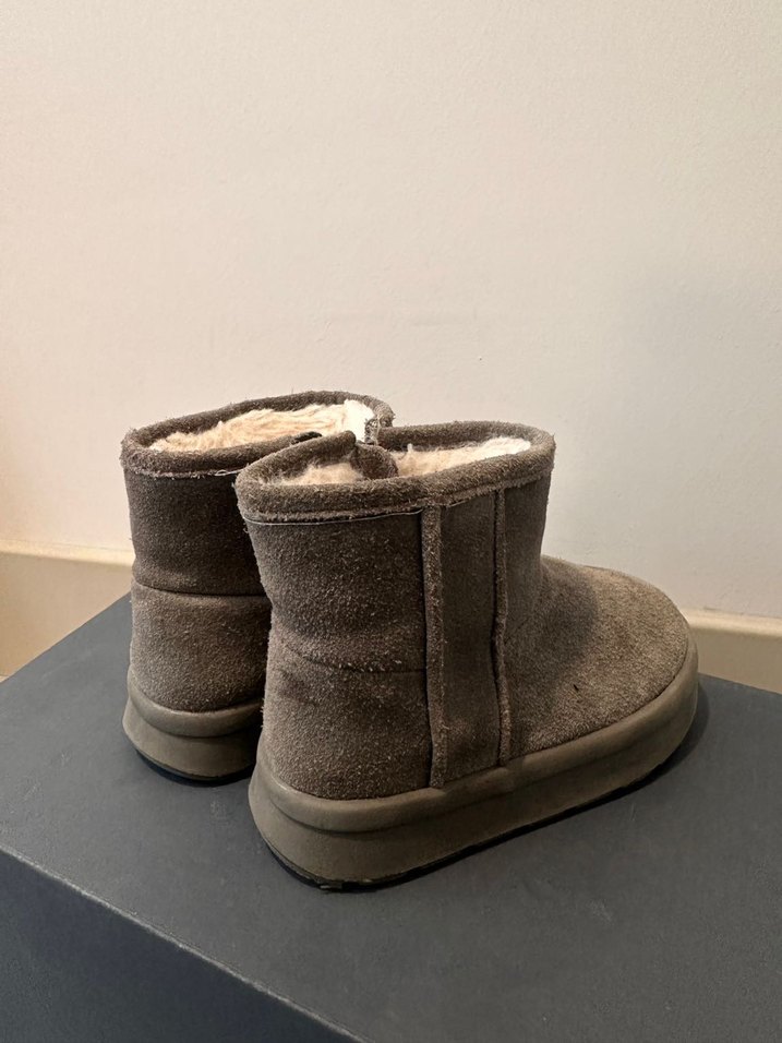 Kız çocuklar için gri süet dış yüzeye ve içi kürklü detaylara sahip botlar. Düz ve sokak stili tasarımıyla rahat ve temel bir görünüm sunar.