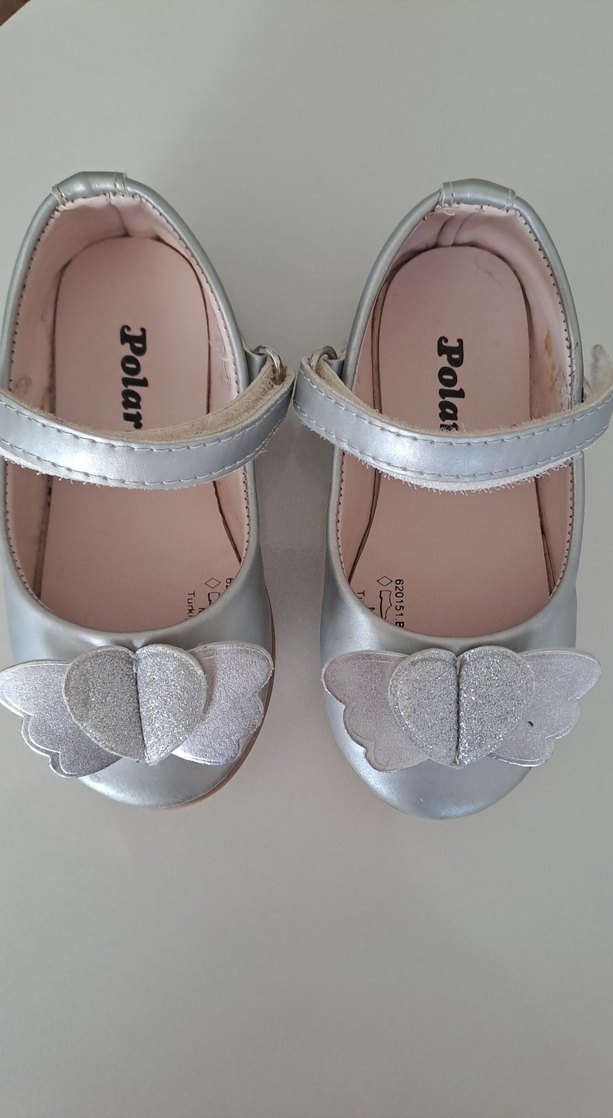 Kız çocukları için tokalı, kalp ve kanat detaylı gri babet ayakkabılar. Kauçuk malzemeden üretilmiş, rahat ve sade bir tarza sahip. İç kısmında "Polar" yazısı bulunur.