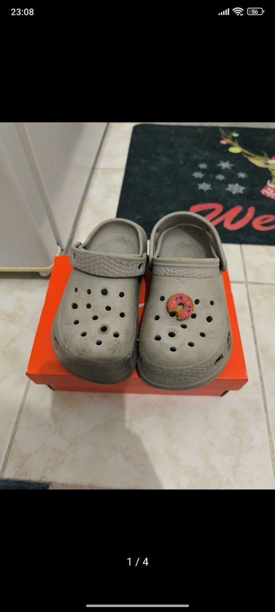 Gri kauçuk kız çocuk terlikleri, tokalı kayış ve baskılı donut süsü ile trendy rahat sokak stili için uygundur.