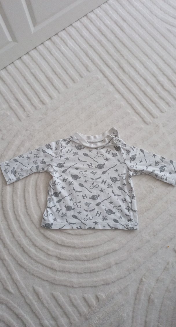 Gri renkli kız çocuk sweatshirtü, uzun kollu ve yuvarlak yakalıdır. Gevşek kesim ve yumuşak, sıcak örme kumaştan üretilmiştir, baskılı deseni vardır.