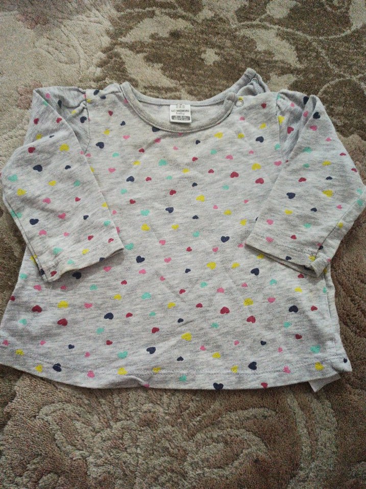 Gri uzun kollu kız çocuk tişörtü, bol kesim ve renkli kalp baskılarıyla. Pamuklu yumuşak kumaştan, yuvarlak yaka ve omuzda düğme detaylı.