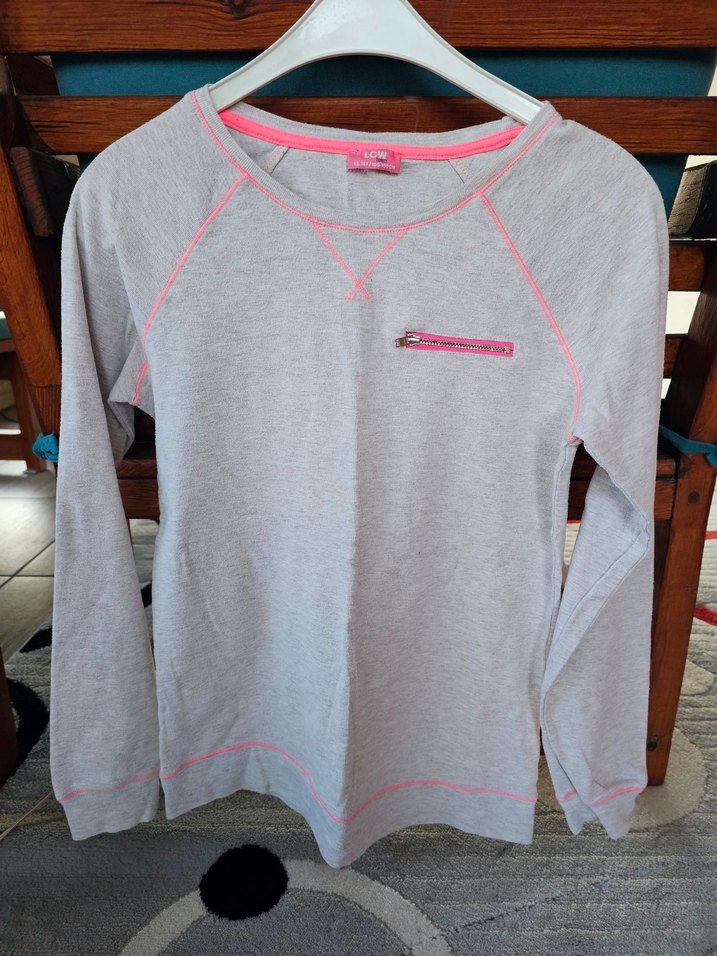 Kız çocukları için pamuklu, gri renkli, uzun kollu ve yuvarlak yakalı sweatshirt. Cepte fermuar detayı ve rahat kesimle sokak stiline uygun.