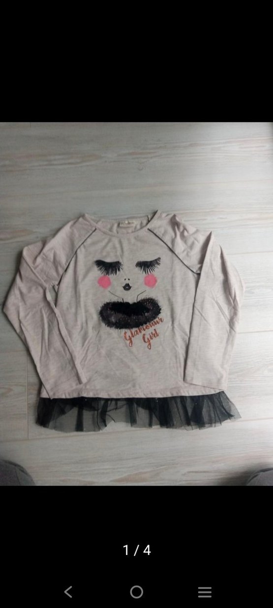 Gri renk, uzun kollu, yuvarlak yakalı kız çocuk tişörtü. Baskılı ve tül detaylı, yumuşak ve sıcak kumaştan, rahat kesim.