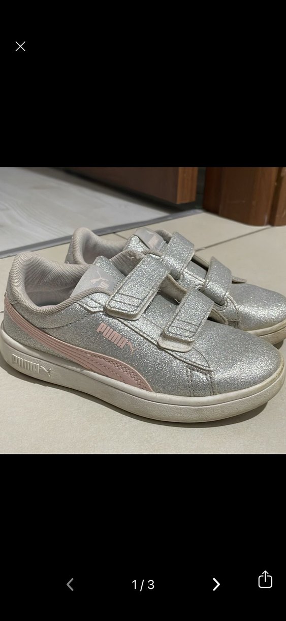 Gri renklerde, simli görünümlü, iki cırt cırtlı kız çocuk spor ayakkabısı. Metal dokulu ve sokak stili tasarımına sahip.