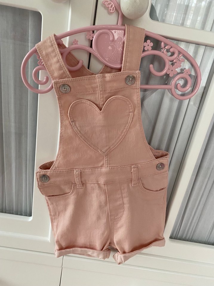 Kalp detaylı salopet Ürün sadece birkaç defa giyildi, fotoğraflarda görüldüğü gibi iyi durumdadır.