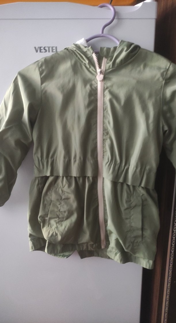 Fermuarlı ve yakalı, sentetik kumaştan yapılmış bu haki renk kız çocuk yağmurluğu, şık ve rahat bir sokak giyimi parçasıdır. lcw markalıdır. ☔