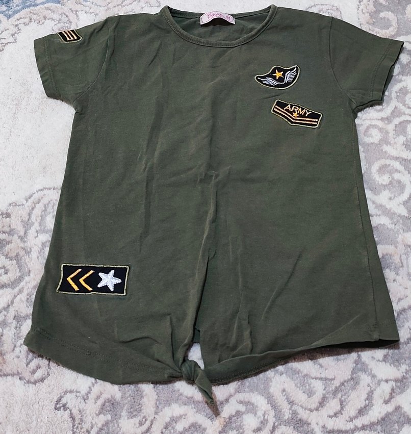 Kız Çocuk Haki Nakışlı Kısa Kollu Tişört