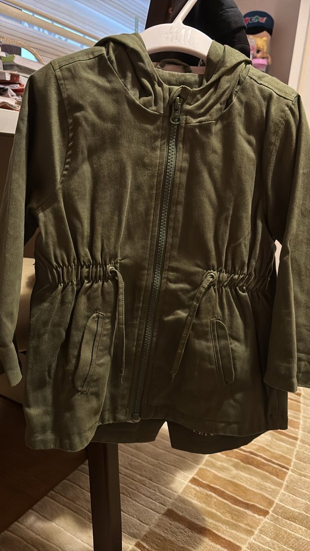 Fermuarlı önü ve kesik yaka detaylı, fitted kesimde kız çocuk ceketi. Yumuşak süet kumaştan, koyu haki renkte, ayarlanabilir beli ve iki cep bulunur.