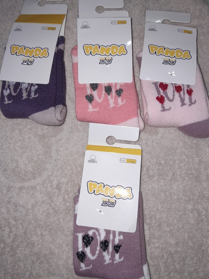 Kız çocuklar için yumuşak ve sıcak polar çoraplar, pastel pembe tonlarında baskılı desenlerle. PANDA ve CANDA markalı.
