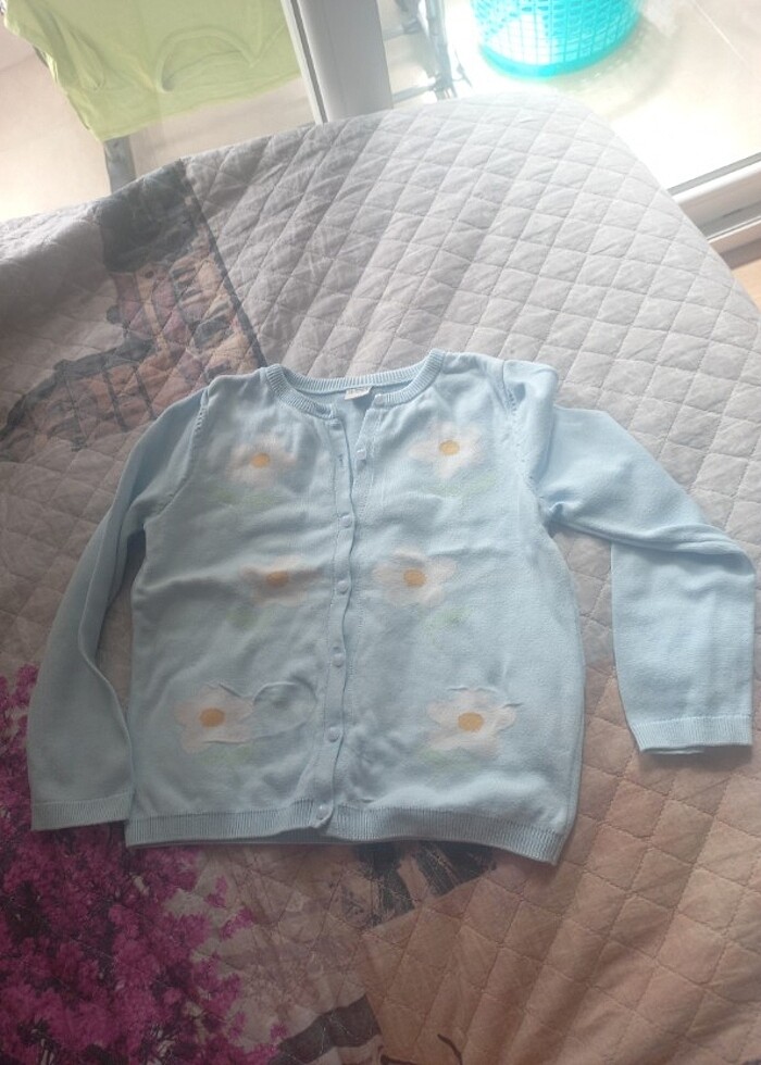 Kız çocuk hirka 7-8 yaş, durum son fotoğrafta gibi, küçücük lekeleri var, sulu boyadan