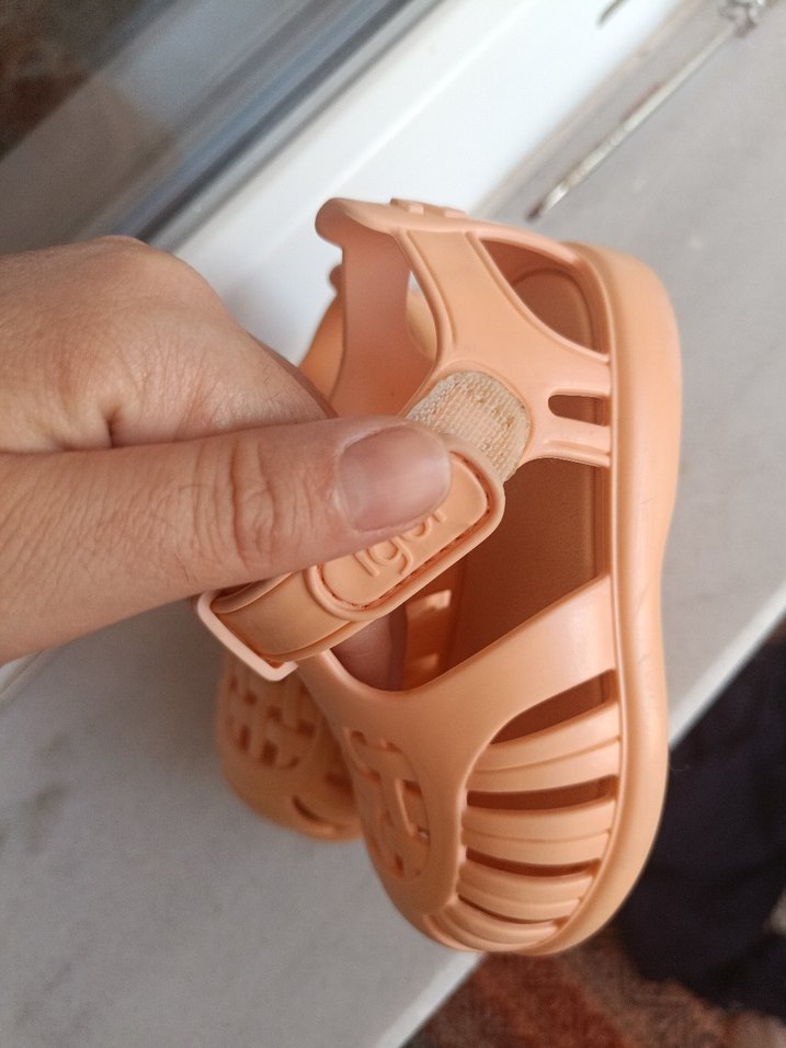 Bu kız çocuk terlikleri pastel bej renkte, bohem tarzda ve yumuşak kauçuk malzemeden üretilmiştir. Ayarlanabilir Velcro bantlı, düz tasarımlıdır.