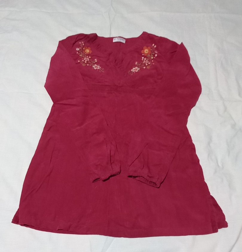 Bordo tunik 11-12 yaş renkli nakışlarla süslenmiş, ince kadifedir.günlük kullanıma uygundur.