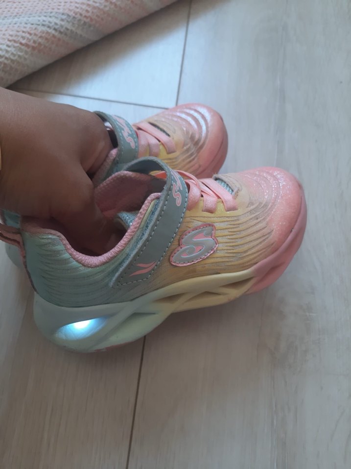 Kız çocukları için pastel pembe, sarı, turkuaz renklerinde, ışıklı kauçuk tabanlı ve cırt cırtlı sneaker, 25 numara, temiz kullanıldı