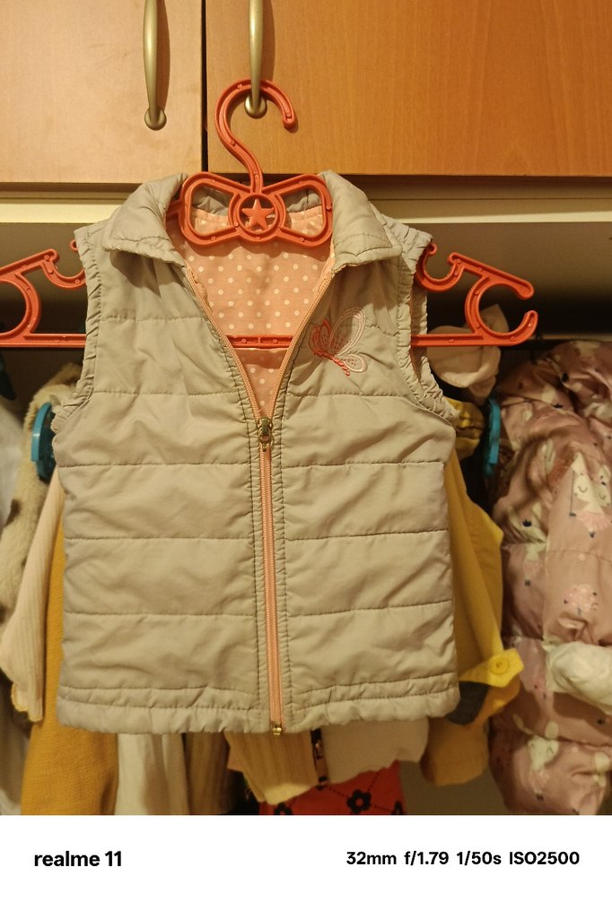 Kahverengi ve gri tonlarında, fermuarlı ve işlemeli detaylara sahip, straplez kesim ve vücuda oturan kız çocuk yeleği. Yumuşak tekstil kumaştan üretilmiştir.