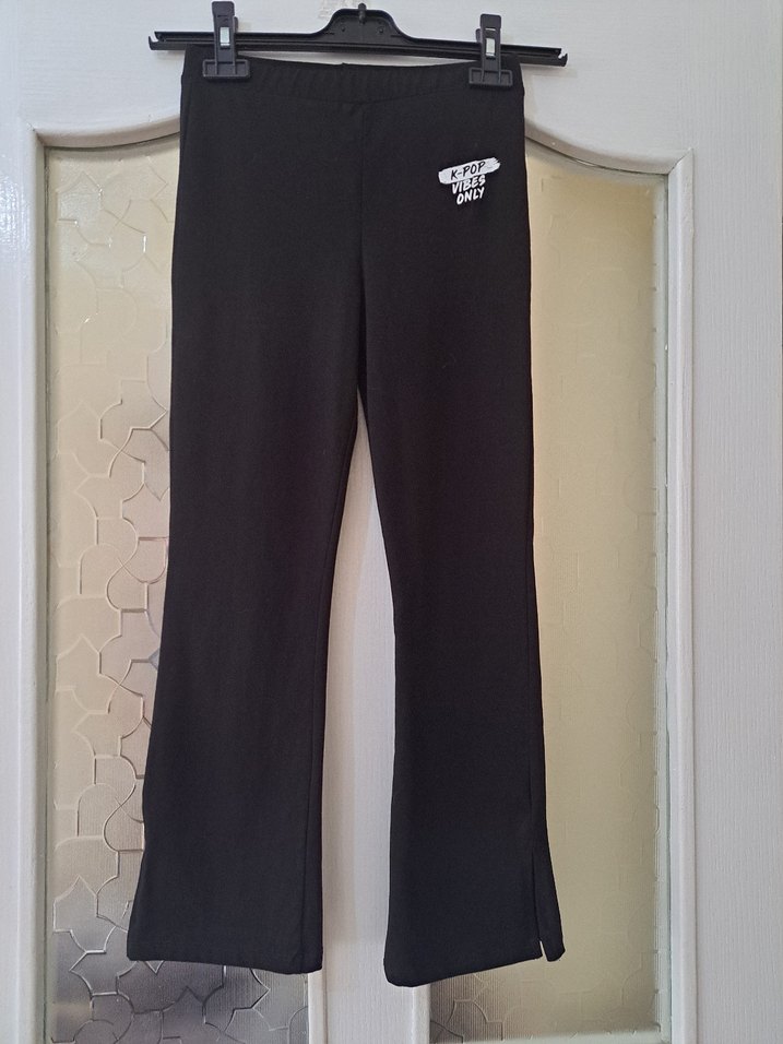 K pop baskılı ve yırtmaçlı siyah ispanyol paça kız çocuk taytı. Sayılı kullanılmış olup, sorunu yoktur. Ölçüler verildi, iade kabul edilmez. #lcw #lcwaikiki #kızçocuk #tayt #ispanyolpaça #kpop