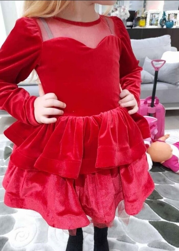 Kız Cocuk Kadife Abiye Elbise