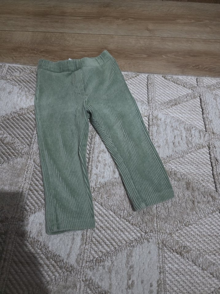 Yeşil renkli, kadife dokuma, rahat kesim kız çocuk taytı. Yumuşak ve sıcak kumaş, sade normcore tarzında tasarlanmıştır.