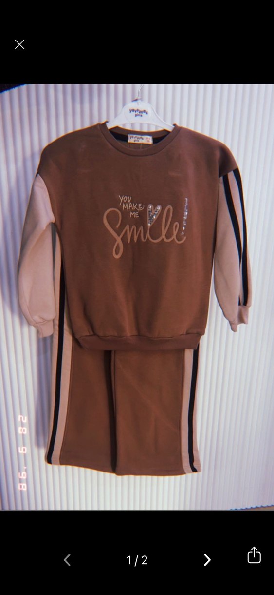 Kız Çocuk Kahverengi Baskılı Eşofman Takımı