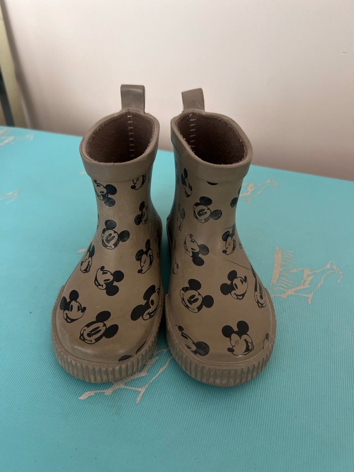 Kahverengi su geçirmez botlar, baskılı Mickey Mouse desenli detaylı, trend ve rahat stil sunar.Yağmur botu hasarsız.