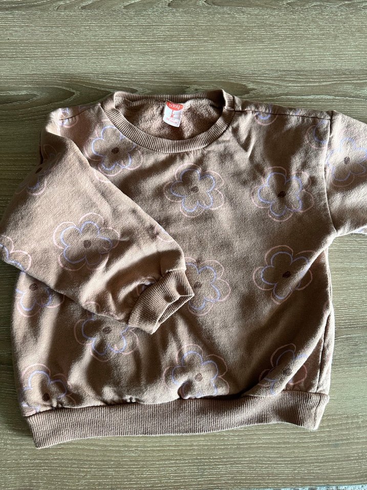 Kız çocuk kahverengi sweatshirt, bisiklet yaka ve uzun kollu. Yumuşak içi polarlı. Temiz ve leke yoktur
