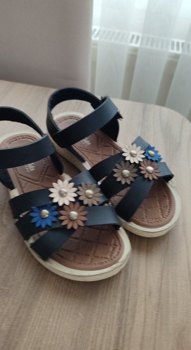 Kahverengi tokalı ve çiçek desenli kız çocuk sandaletleri, rahat kullanım için kauçuk malzemeden üretilmiştir.
