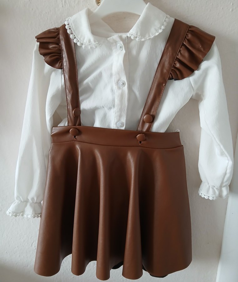Kız Çocuk Kahverengi Deri Fırfırlı Bluzu 3yaş