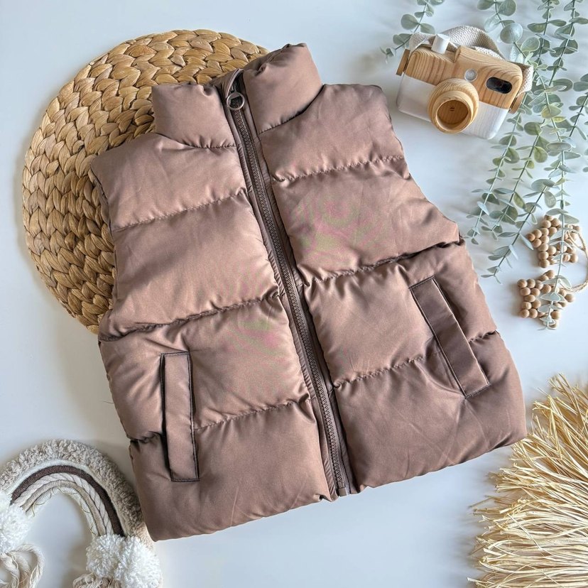 Kız Çocuk Kahverengi Fermuarlı Yelek