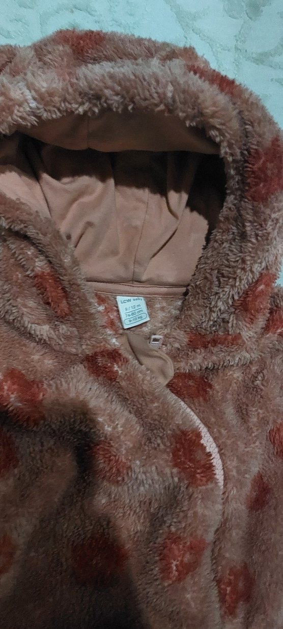 Kapüşonlu, baskılı desenli, peluş yumuşak ve sıcak somon regi kız çocuk tulum . 2 kere giyildi arabada... çünkü kizima uymadığını için satiliktir ,...9_ 15 ay kadar uyumlu.