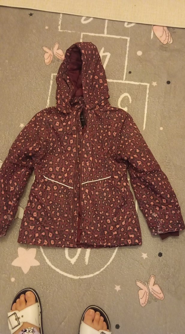 Kahverengi, kapüşonlu kız çocuk montu, yılan desenli ve kürk detaylıdır. Sokak stiline uygun, yumuşak ve sıcak kumaştan yapılmıştır. name it marka kar montu