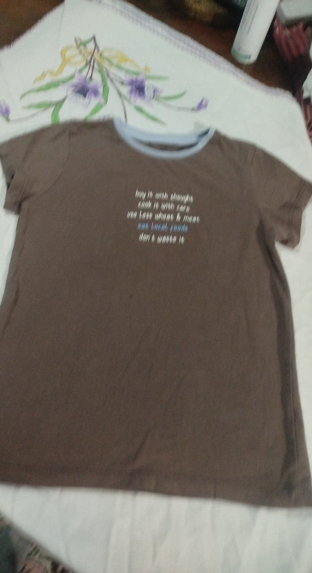 Kız çocukları için pamuklu, kahverengi, kısa kollu, baskılı ve salaş kesim tişört. Sokak stiline uygun rahat bir modeldir.
