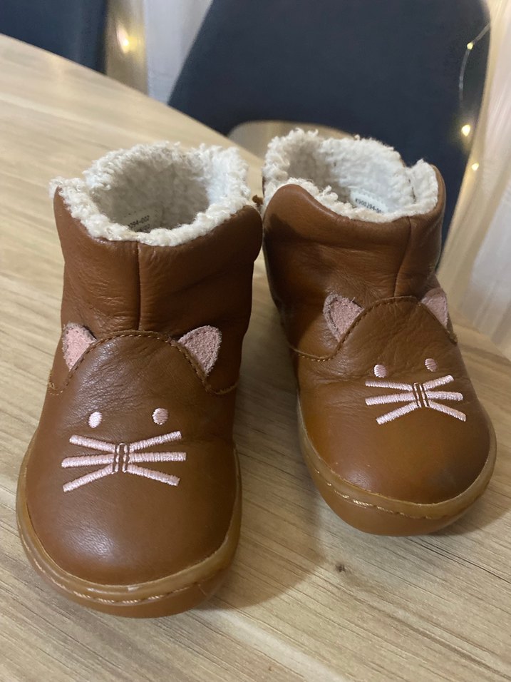 Kahverengi deri kız çocuk botları, yumuşak kürk astarlı ve ön kısmında sevimli kedi yüzü detaylıdır. Rahat kullanıma uygundur. 22 numara dır çok kullanılmadı aşırı rahat kutulu gönderim sağlanıcaktır.