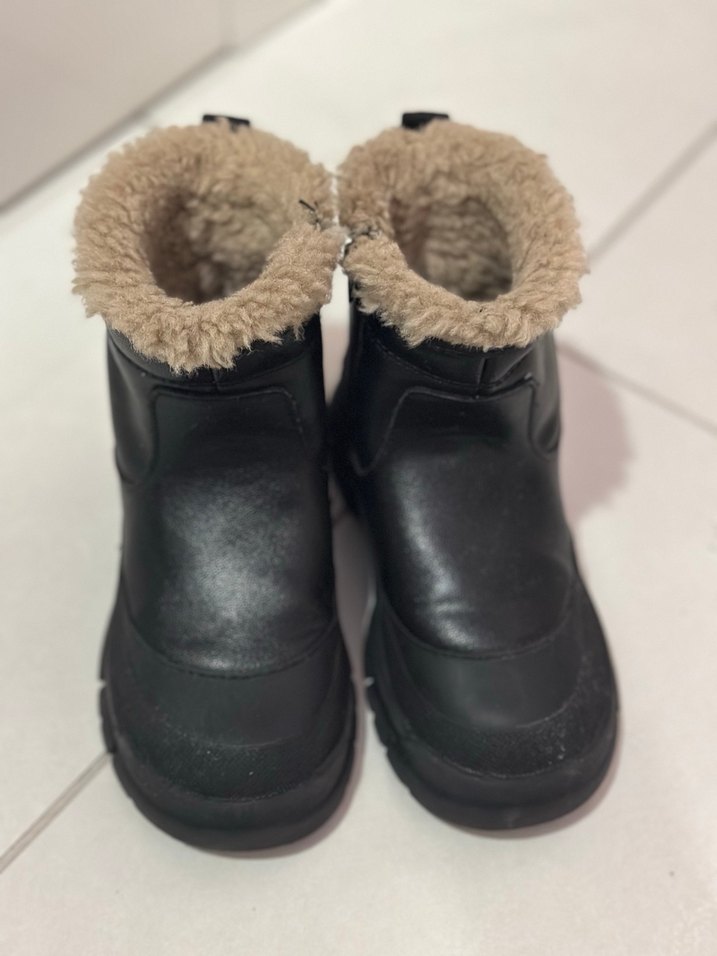 Kız çocukları için kahverengi kauçuk dış yüzeyli, kürklü detaylı sıcak tutan sokak stili botlar.