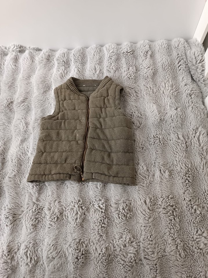 Kahverengi, kürk detaylı kız çocuk yeleği. Kolsuz, fitted kesim ve boğazlı yaka ile sıcak tutar.