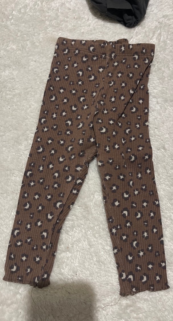 Kahverengi, leopar desenli ve kürk detaylı, rahat kumaştan yapılmış, fit kesim kız çocuk taytı.