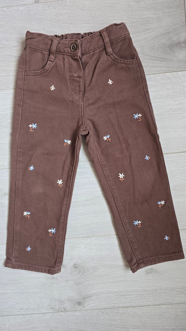 Kız Çocuk Kahverengi Nakışlı Bol Kesim Kot Pantolon
