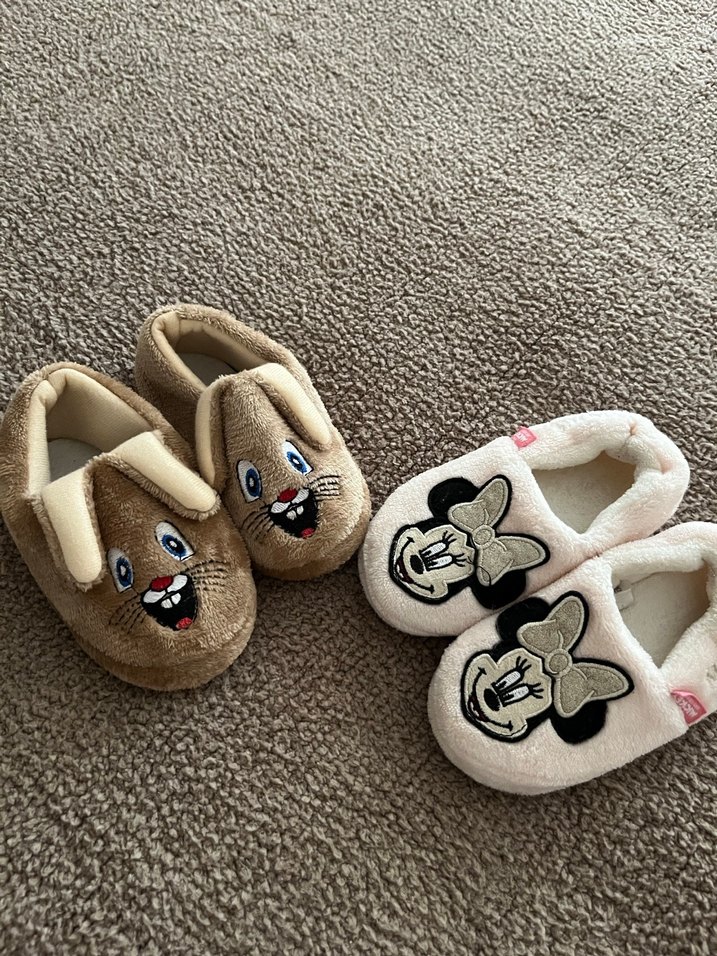 Kız çocukları için kahverengi, nakışlı ve kürk detaylı, yumuşak dokulu sıcak ev terlikleri.