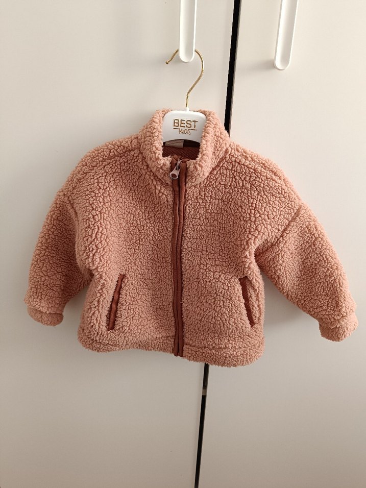 Bol kesim, kahverengi peluş kumaştan yapılmış, kürk detaylı kız çocuk montu. Önü fermuarlı ve yan ceplidir, rahat ve sıcaktır.