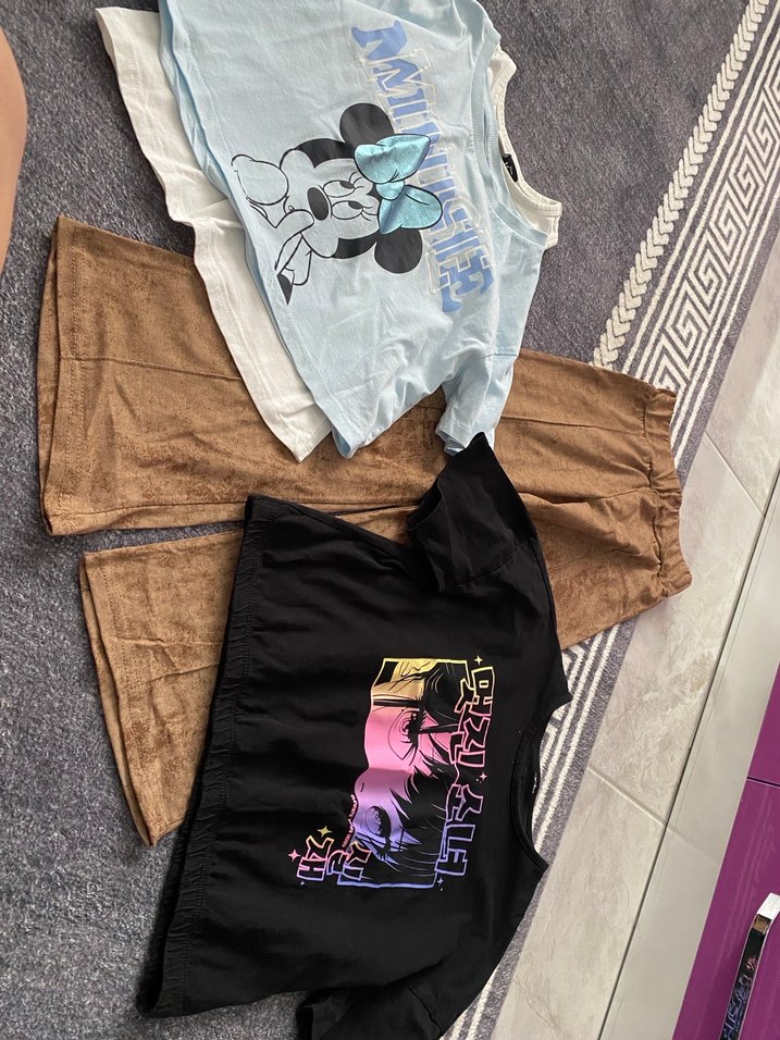 Kız çocukları için pamuklu, kahverengi baskılı, straplez yaka ve kısa kollu bol kesim tişört. Sokak modasına uygun rahat bir tarz sunar.