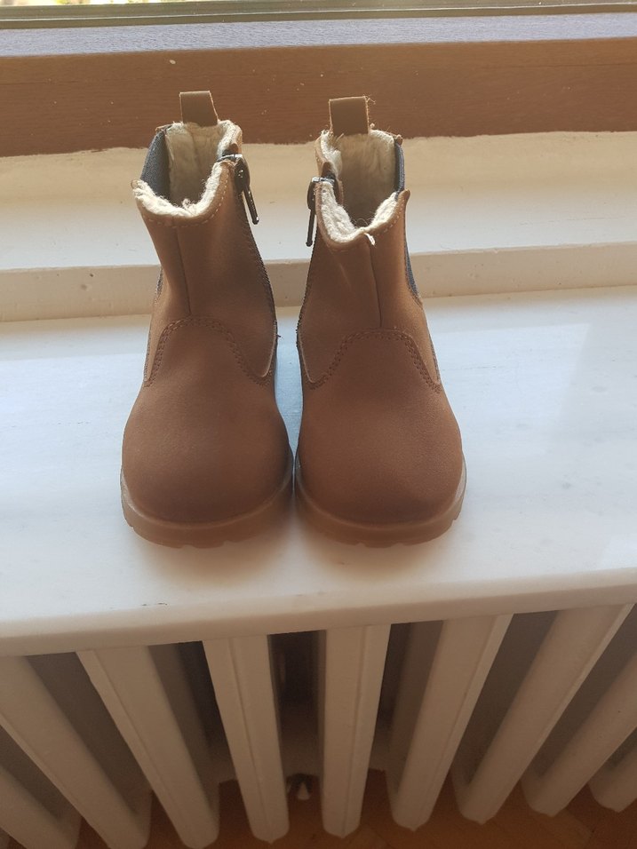 Kız çocukları için kahverengi süet malzemeden, içi kürklü, yan fermuarlı, sade desenli botlar.