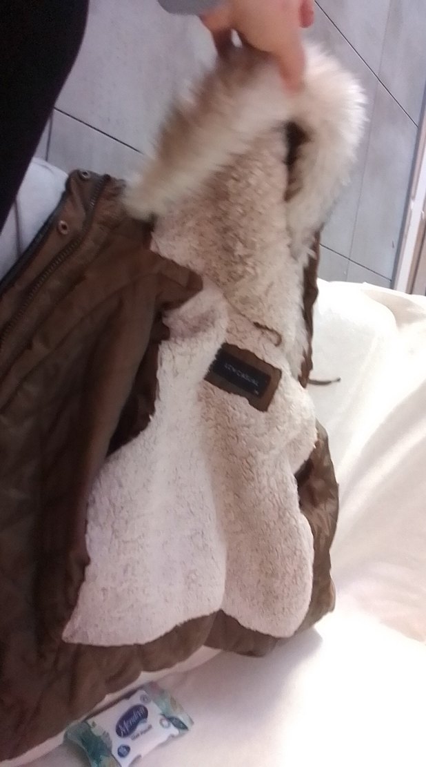 Kız çocuklar için kahverengi süet kaban, yakalı ve kürk detaylı, rahat ve sokak tarzı, günlük kullanıma uygun, vücuda oturan kesimde.