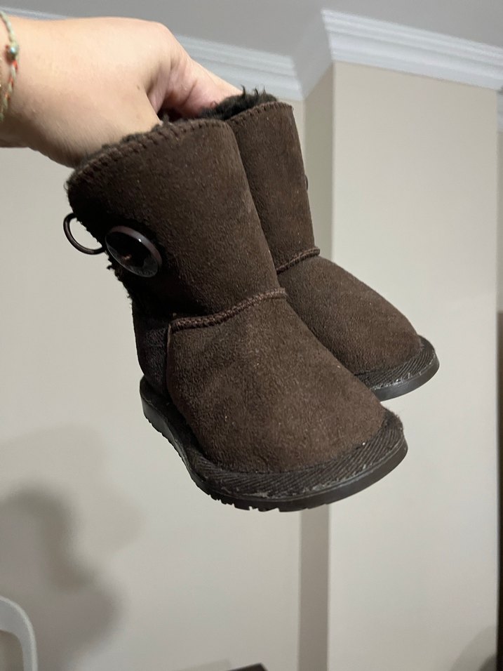 Koyu kahverengi süetten yapılmış, tokalı kız çocuk botları. Sade ve normcore tarzda, günlük kullanıma uygun. erkekte kullanabilir 21 numara