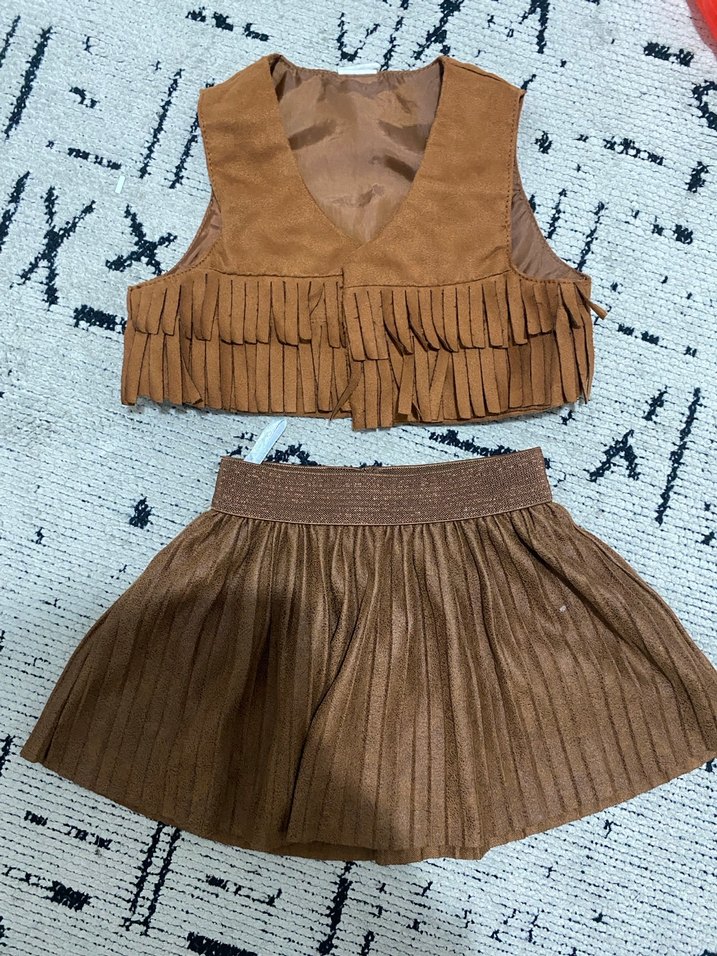Kız Çocuk Kahverengi Süet yelek etek takım