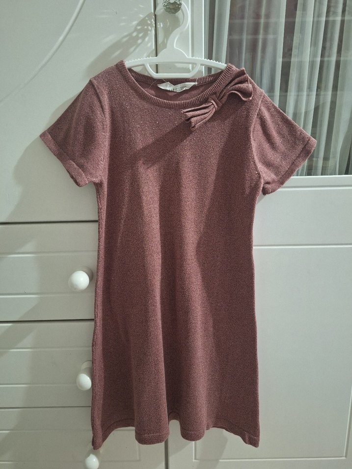 Kız çocuk kahverengi triko kısa kollu tişört, rahat kesim ve yuvarlak yaka ile. Fiyonk detaylı, günlük sokak stiline uygun bir parça.