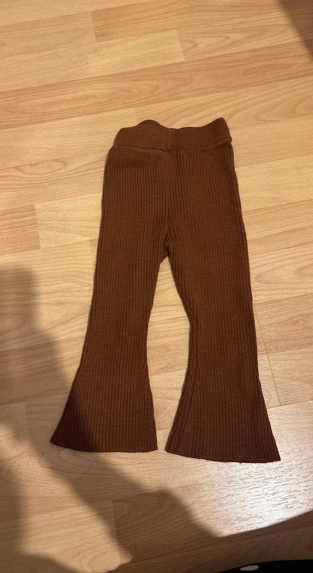 Kız çocukları için fitted kahverengi triko tayt, yumuşak triko kumaş ve sade normcore stil sunar. Trendy günlük kombinlere uygun.