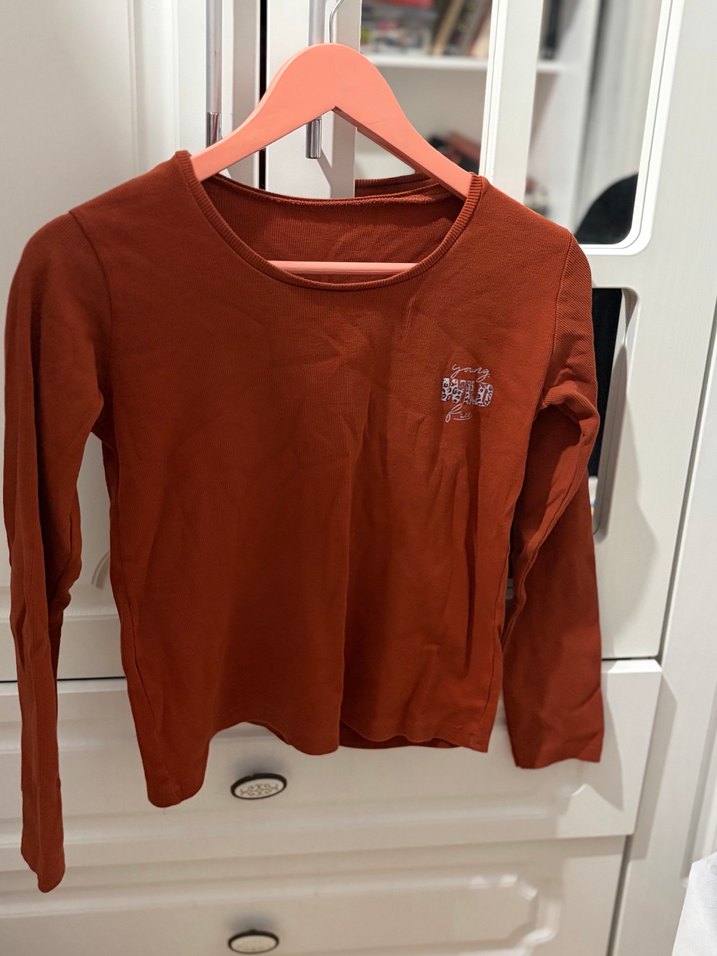 Kız çocukları için uzun kollu, yuvarlak yakalı ve bol kesim kahverengi sweatshirt. Yumuşak ve sıcak kumaştan, baskılı detaylı, günlük sokak tarzına uygun.