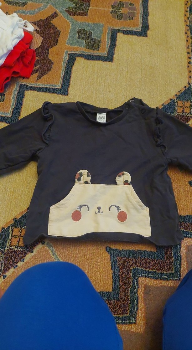 Kız çocuk tişörtü uzun kollu ve yuvarlak yakalıdır. Yumuşak ve sıcak kumaştan yapılmış, volan detaylı ve önünde sevimli baskı vardır.