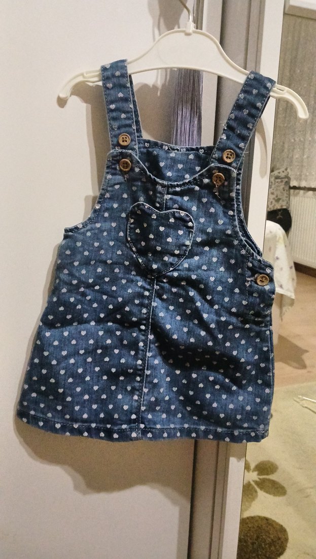 Kız Çocuk Kalp Desenli Denim Elbise