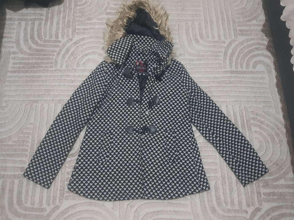 Kız çocukları için fitted kesim gri desenli ceket, kapüşonunda kürk detayları ve notched lapel yakaya sahiptir. Sokak modasına uygun ve sıcak tutar.